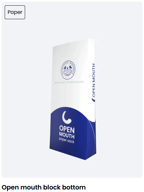 De openmondzak met blokbodem is de perfecte oplossing voor een breed scala aan industriële sectoren. Praktisch en duurzaam, het kan worden aangepast met verschillende samenstellingen: alleen papier, met PE-film tussen de papierlagen, of met buisvormige PE-voering in contact met het product.